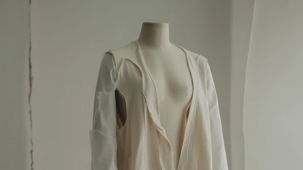 Эта мысль точно описывает подход Маржела — он искал моду везде, кроме подиума в привычном смысле. Его коллекции строились на деконструкции: швы выворачивались наружу, подкладка становилась верхом, незаконченные края превращались в эстетический приём. Он брал поношенные вещи с блошиных рынков и превращал их в haute couture.